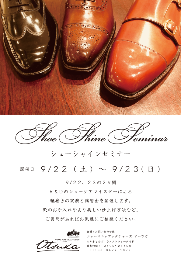 【9/22(土)、9/23(日)】シューシャインセミナーをヒルズ店にて開催します。